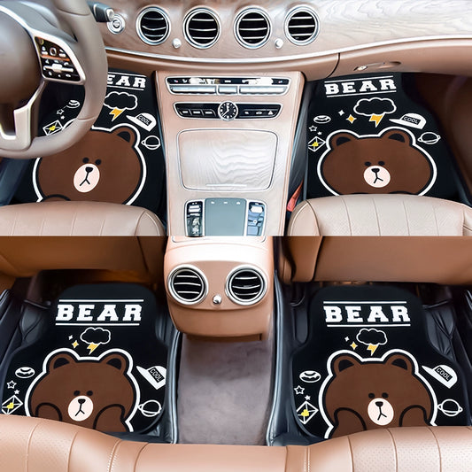 Car Foot Mat Cartoon Cute Carpet Mat Suede Main Driving Anti-Dirty Easy to Clean Women's Car Single Piece Neutral