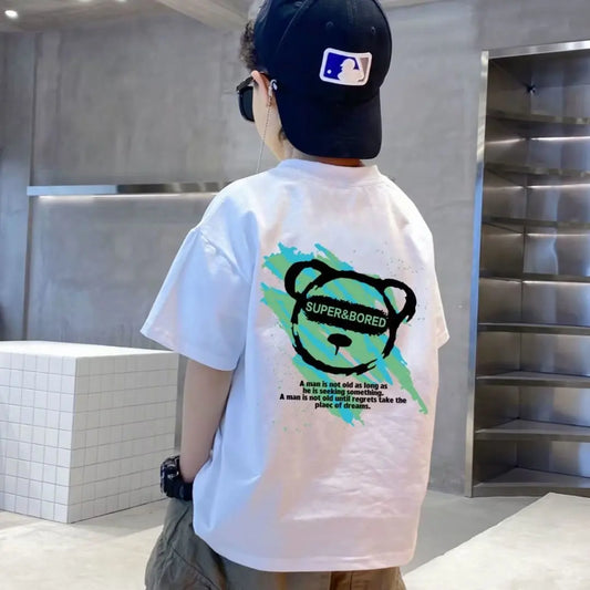 100% Cotton Boys T-shirt Summer Cartoon Cool Graffiti Print Girls Tees Short Sleeve Children Tops High Quality Kids Clothes 2024