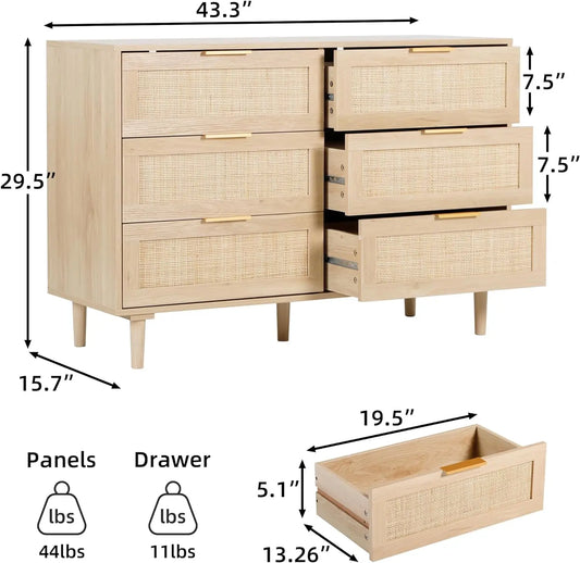 Regular price From $132.44 USDRegular priceUnit price / perSale price From $132.44 USD3/4/5/6/7/8 Drawer Dresser Rattan Dresser Modern Chest with Drawers,Wood Storage Closet Dressers Chest of Drawers