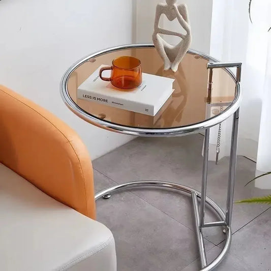 Transparent Tables Glass Creative Lift Coffee Table Simple Sofa Tables Nordic Designer C-Shaped Table Geometric Round Table