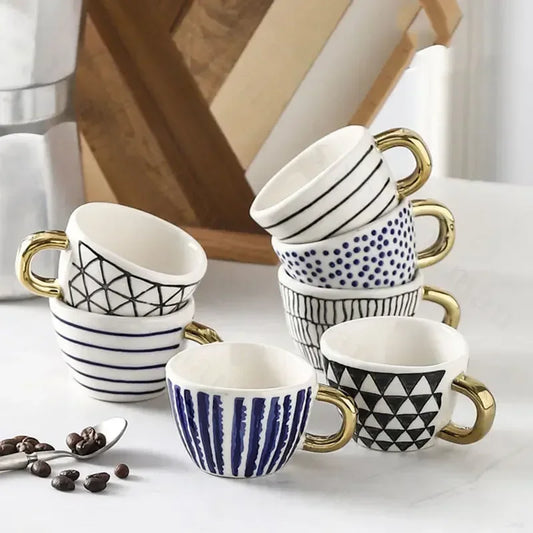 Regular price $10.15 USDRegular priceUnit price / perSale price $10.15 USDCreative American Style Ceramic Mugs Coffee Cups Afternoon Tea Golden Stroke Geometry Irregular Coffee Cup Italian Espresso Mug