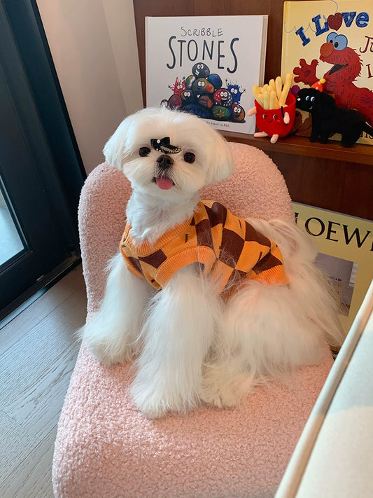 Pet Dog Checkerboard Sweater Autumn and Winter Vest Waistcoat Bichon Schnauzer Pomeranian Teddy Cat Clothes Sweater