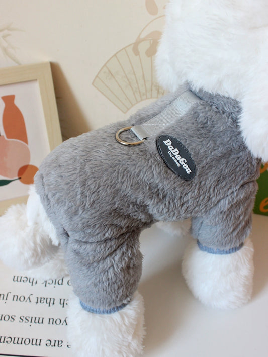 Pet Autumn and Winter Warm Puppy Clothes Teddy Bichon Velvet Winter Traction Home Wear Pull Ring Four Legs Fluffy Jacket