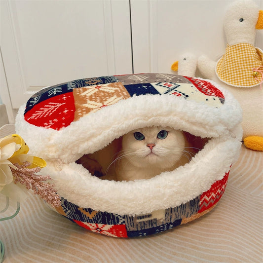 Japanese Style Dorayaki Cat Nest Vintage Winter Warm Closed Dual-Use All Year Round Cat House House Kennel Pet Bed