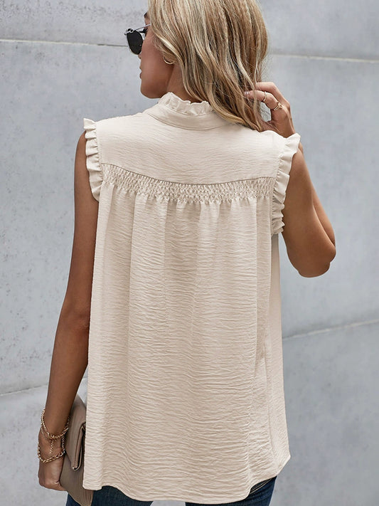 Fashion Turtleneck Buttons Ruffled Casual Sleeveless Vest