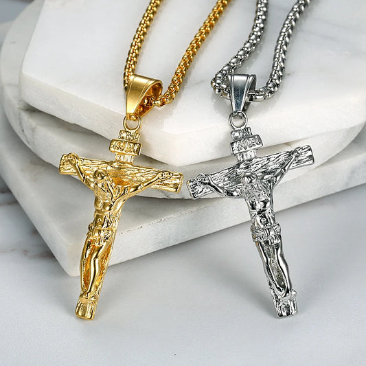 Religious Jesus Christ Cross Pendant Necklace for Women/Men Gold Color Stainless Steel Crucifix Necklaces Men Christian Jewelry