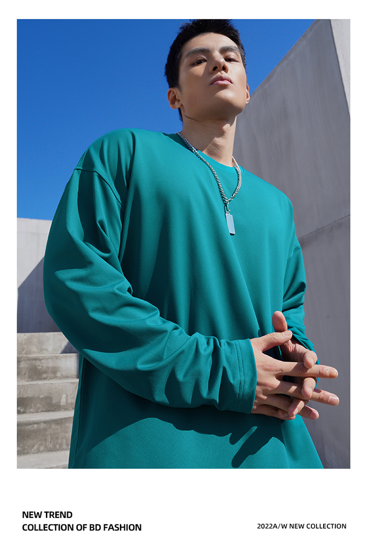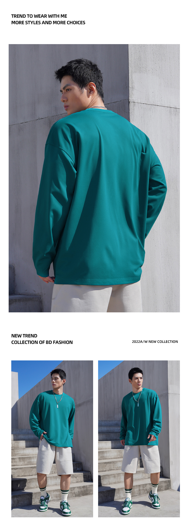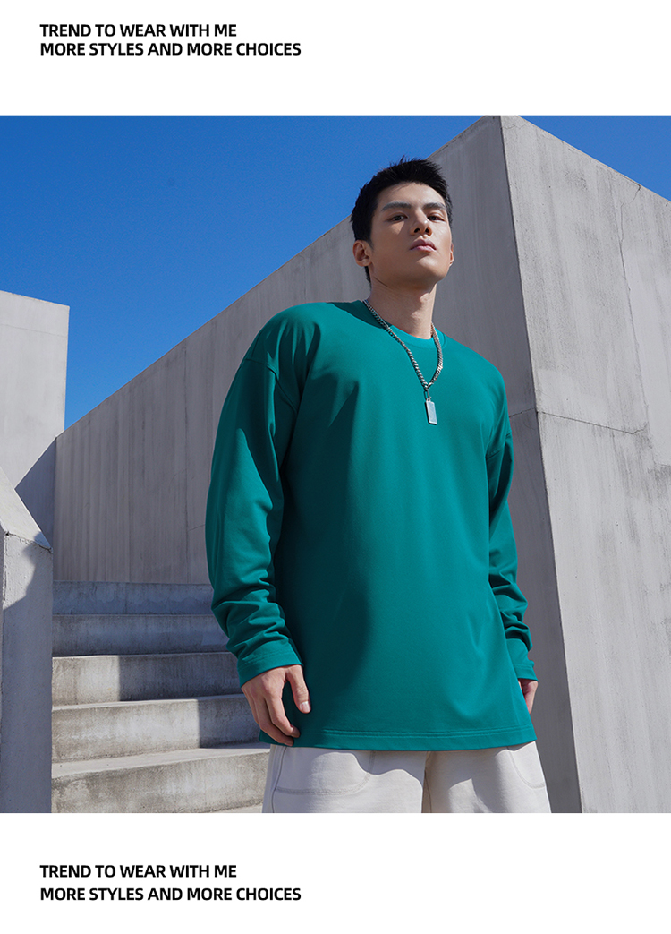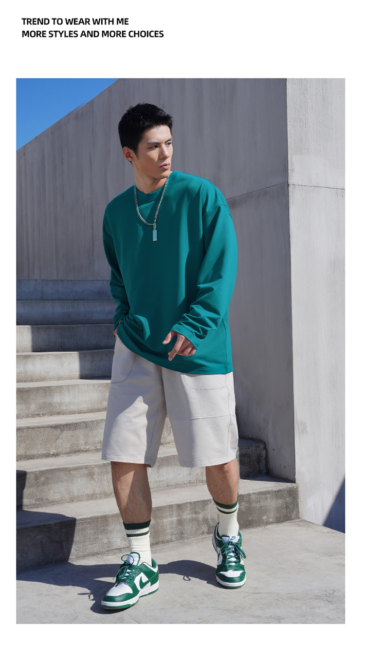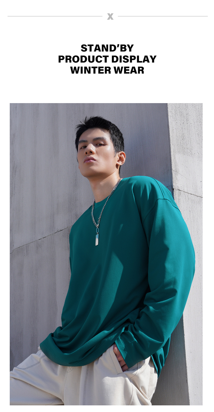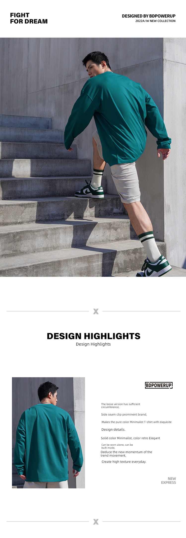 Autumn Men's Retro Solid Color Base Shirt Long-Sleeved T-shirt