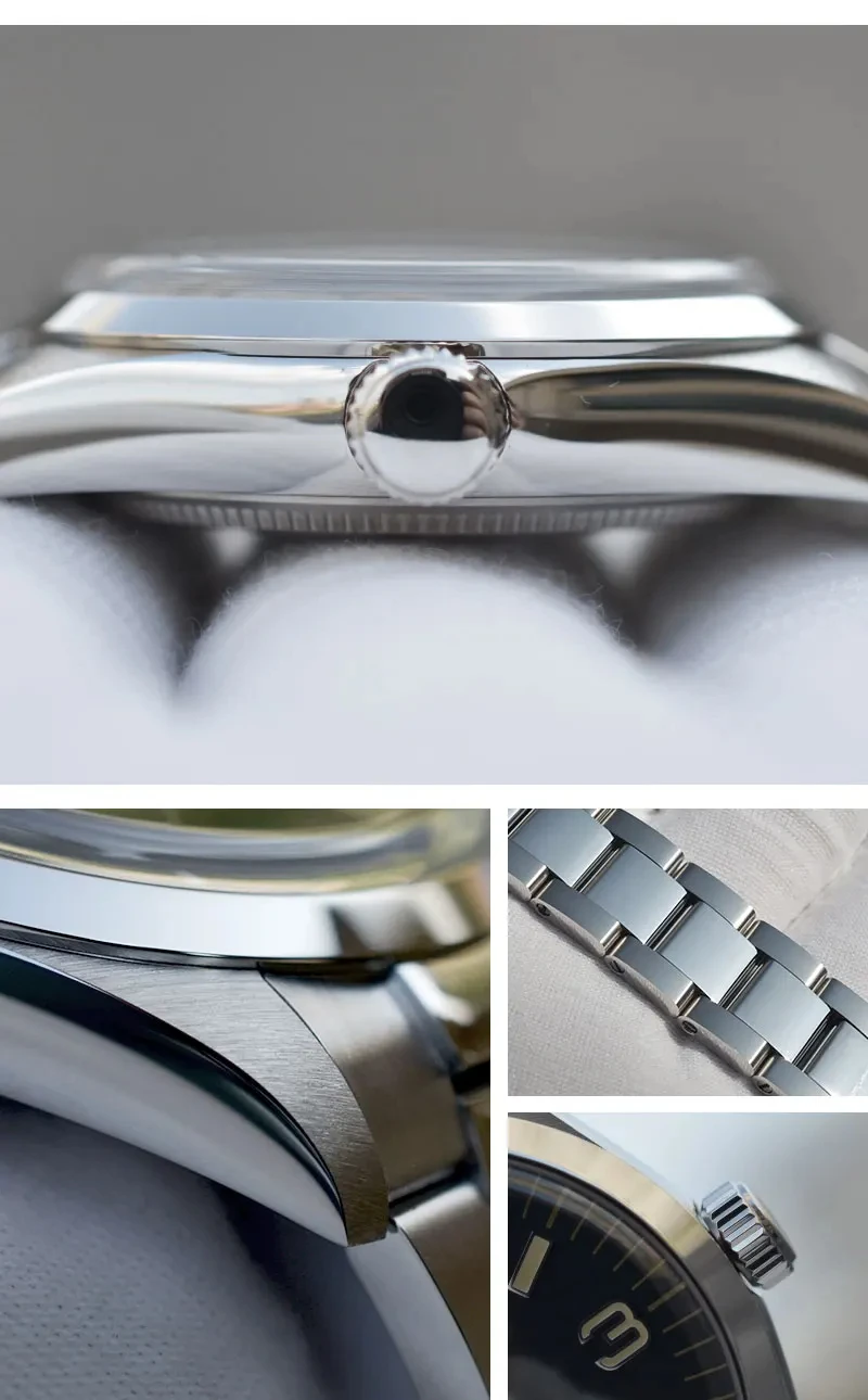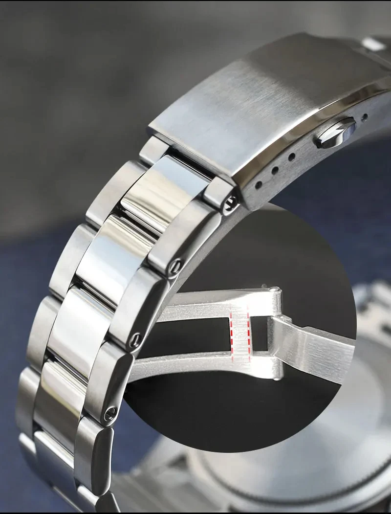 The middle connecting section of the steel bracelet shown in the picture has a polished surface. All products now have the entire bracelet upgraded to a brushed surface, which will be more resistant to scratches.