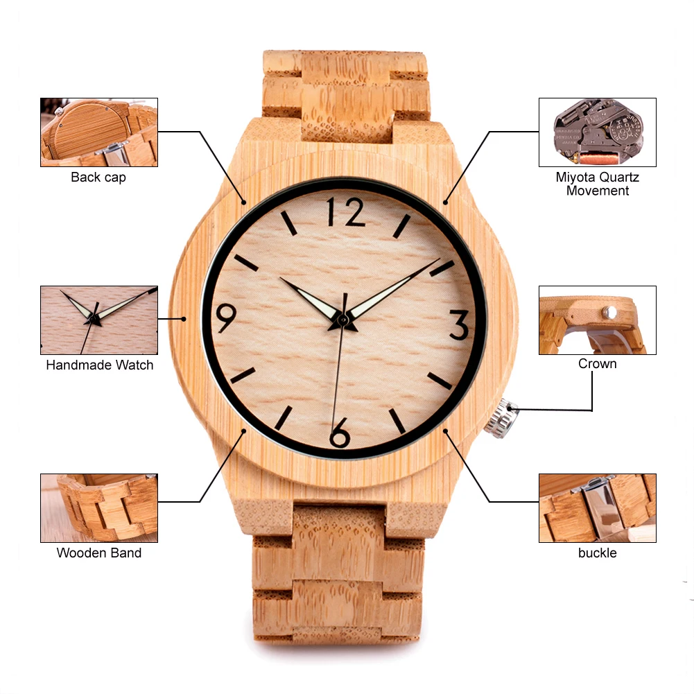 BOBO BIRD Wood Watch Men Bamboo Wooden Watches relogio masculino Japan Movement Clock Timepiece Personalized Gift