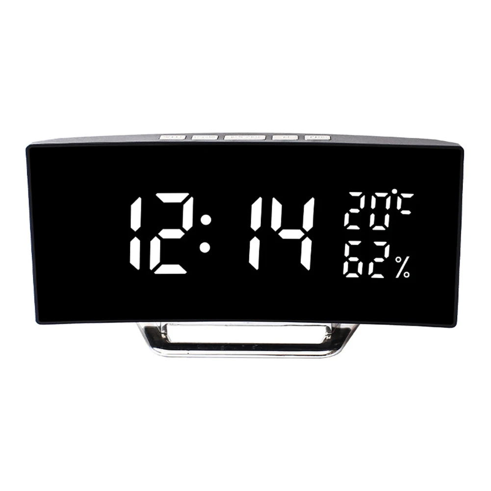 Curved Screen Clock Electronic Clock Large Screen LED Mirror Clock 12/24h Silent Alarm Clock Creative Bedside Clock Room Decor