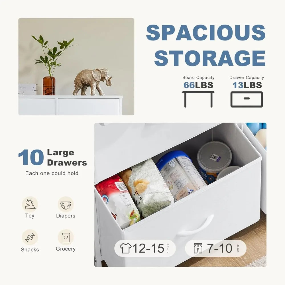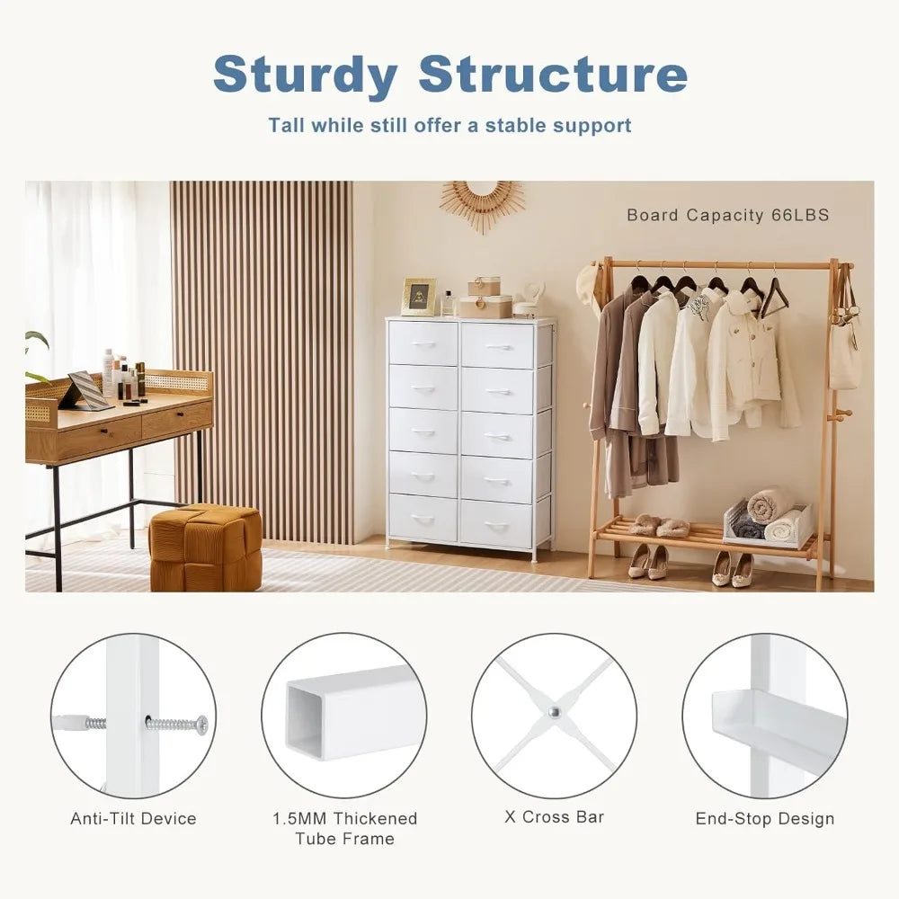 Dresser for Bedroom, Tall Storage Drawers, Fabric Storage Tower with 10 Drawers, Chest of Drawers with Fabric Bins, Sturdy Metal