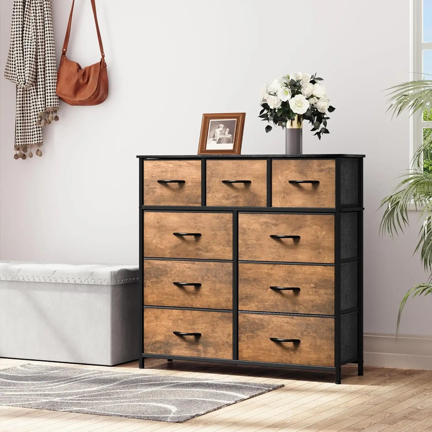 9 DRAWER DRESSER- The chest of drawers features 9 foldable deep drawers and easy-to-pull plastic handles; The non-woven synthetic fabric is easy to care
