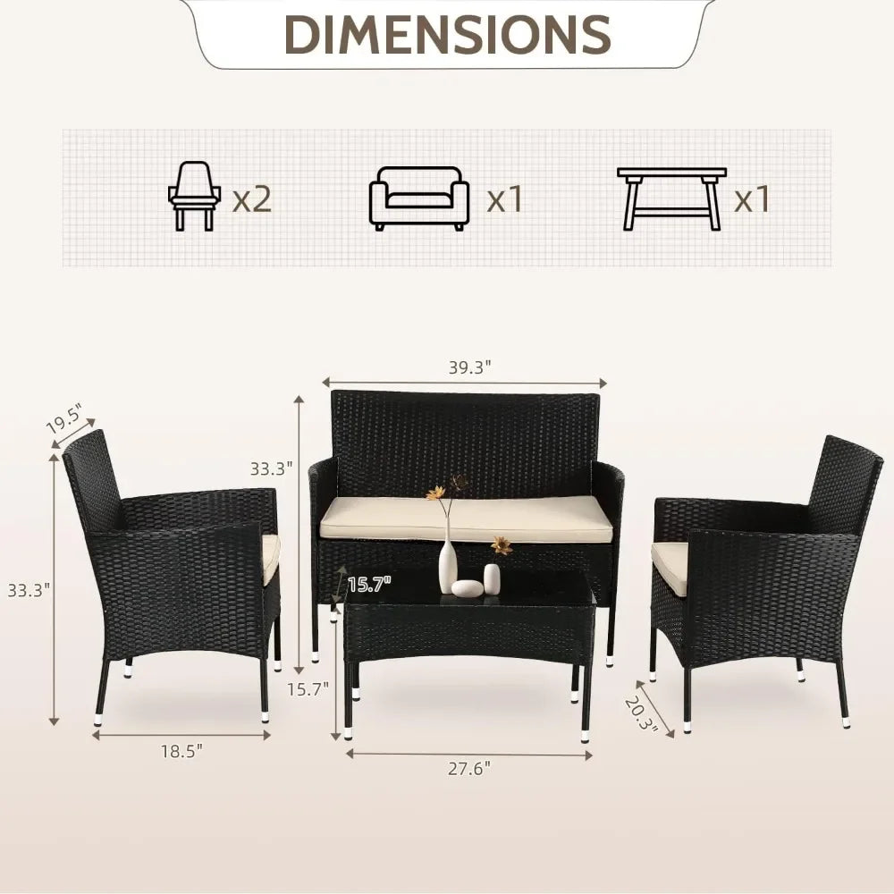 Patio Furniture Set 4 Pieces Outdoor Rattan Chair Wicker Sofa Garden Conversation Bistro Sets for Yard patio furniture outdoor