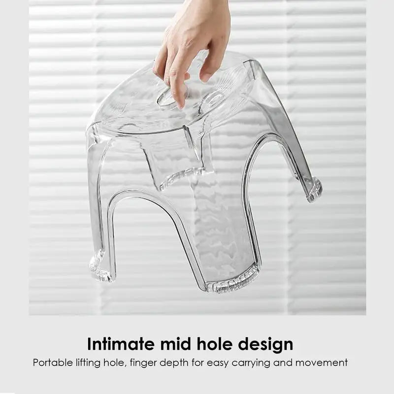 2.Easy Clean: Achieve a seamless shower routine with this clear shower stool, providing optimum convenience for sitting and standing. Its easy-to-operate and easy-to-clean design ensures your bathroom stays looking clean and beautiful.3.Stable and Safe: This clear shower stool has an anti-slip design that prevents it from falling and protects the floor. You can use it with peace of mind in the bathroom.4.Portability Enhanced: The clear shower stool has a finger-penetrable hole, making it easy to move around. With a portable design and a center hole that drains water and circulates air efficiently, this stool is perfect for people on-the-go or those with limited mobility.5.Comfortable and Safe: This clear shower stool is made of durables and sturdy material that can bear the weight of an adult. It adds some different colors to your life.The clear shower stool is a safe and sturdy option for anyone who needs support in the shower. Its simple design is easy to wash and won't tip over easily, while still being able to support the weight of an adult. The lightweight and compact design also make it easy to carry and move around as needed.Specification:Name: BenchMaterial: PPSize: 26*22*20cm/10.24*8.66*7.87 inchesWeight: 600gColor: gray, whitePack List:Clear shower stool*1